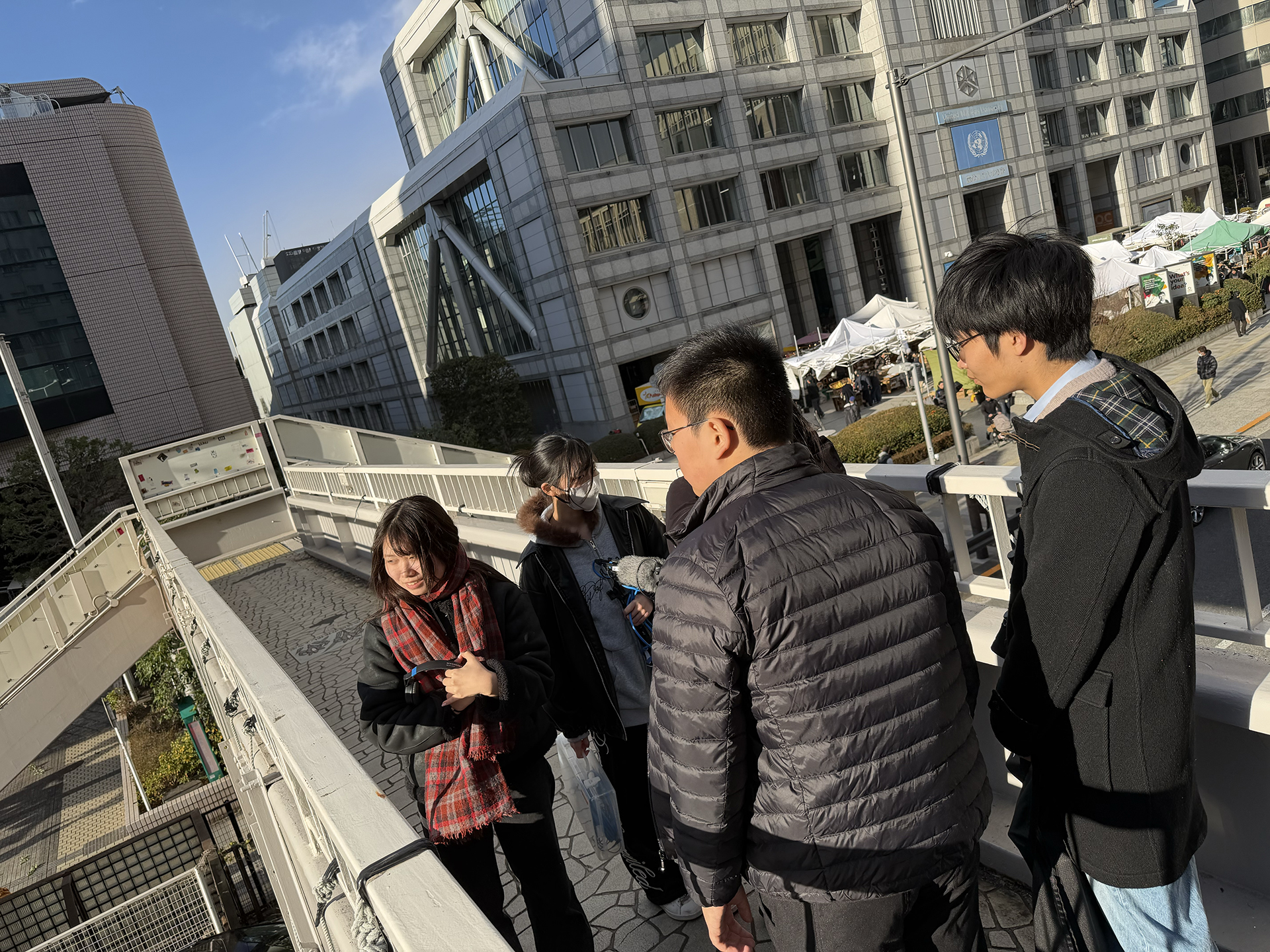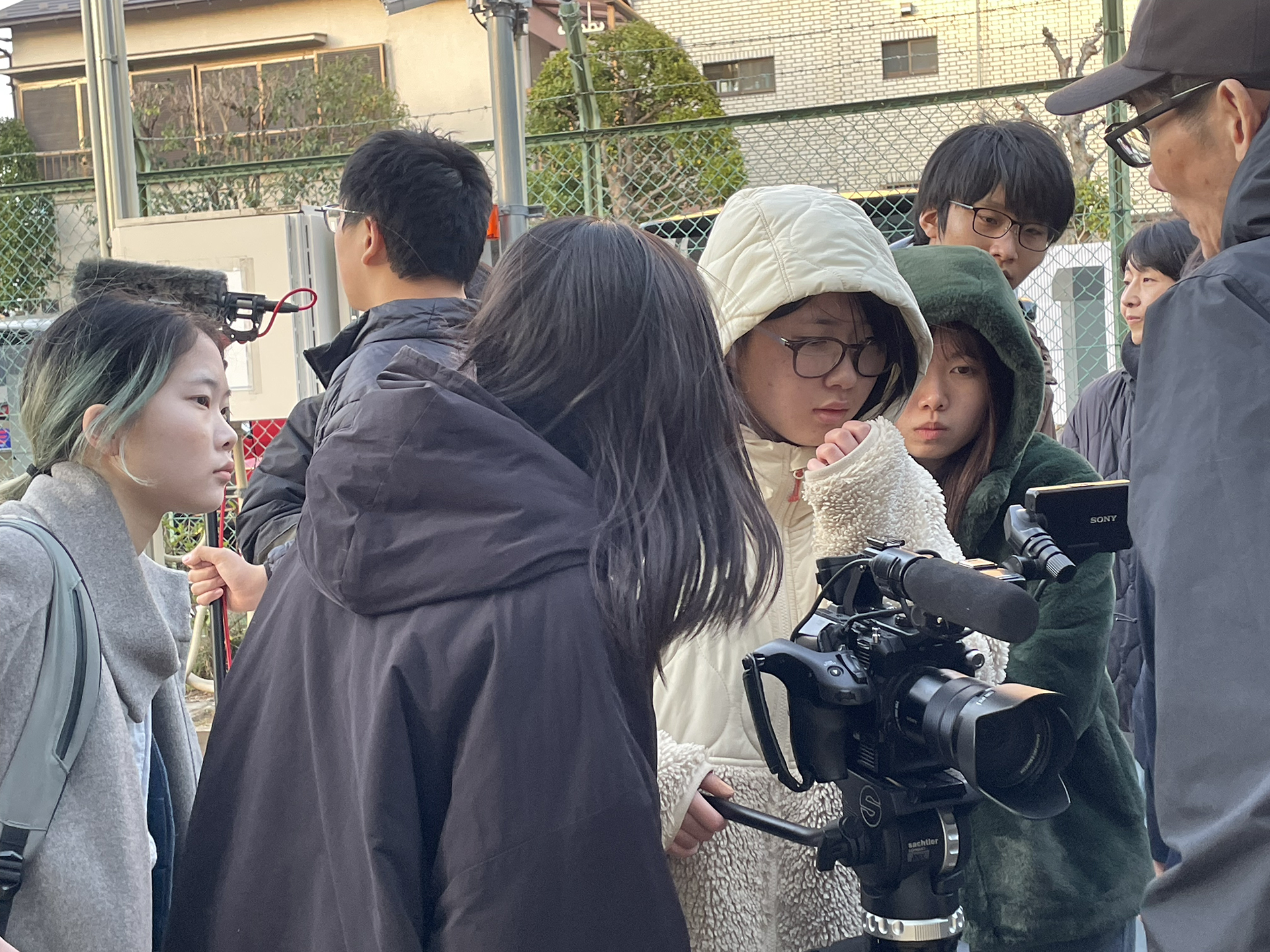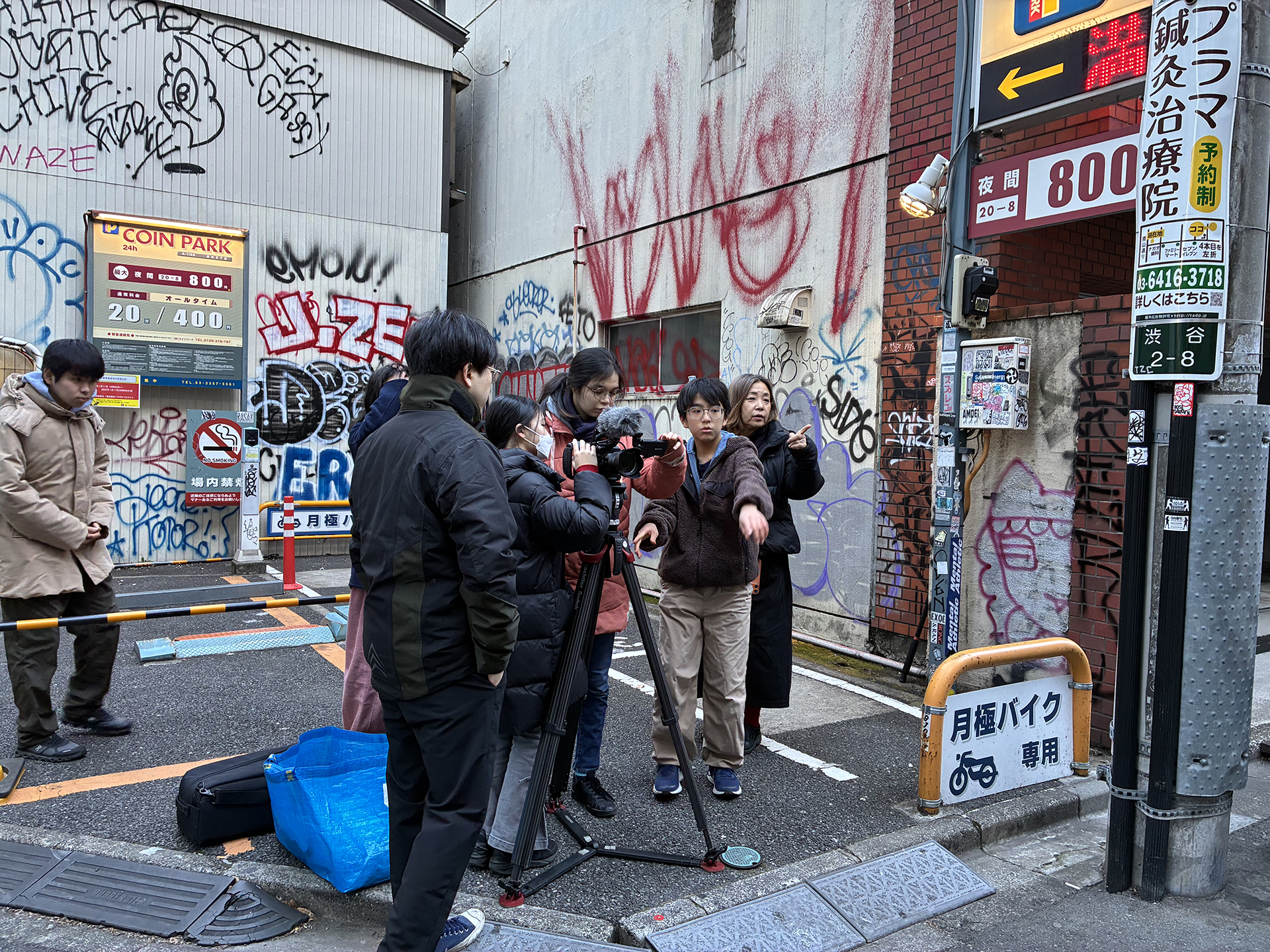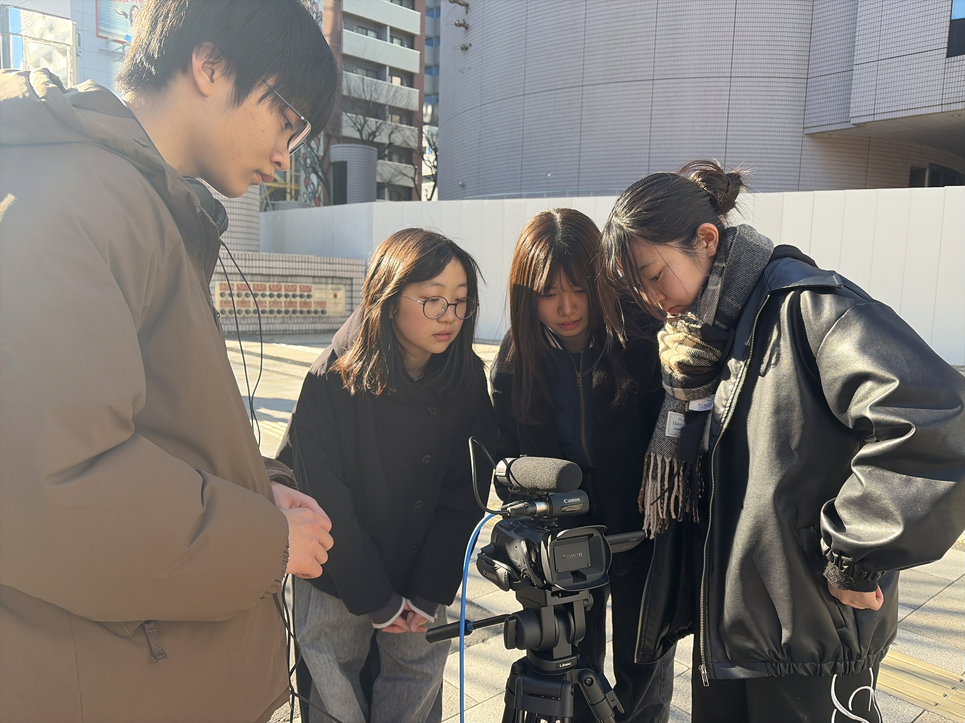 昼食後は2チームに分かれて、今日明日で最大2分の映像を撮る。課題に即して何をどう撮るのか話し合い、何はともあれ街に繰り出す。今日も寒い!