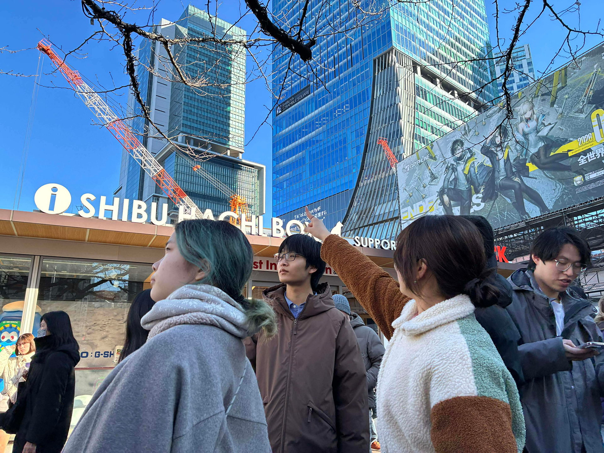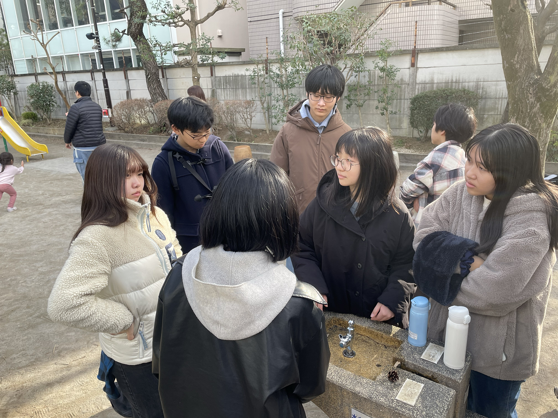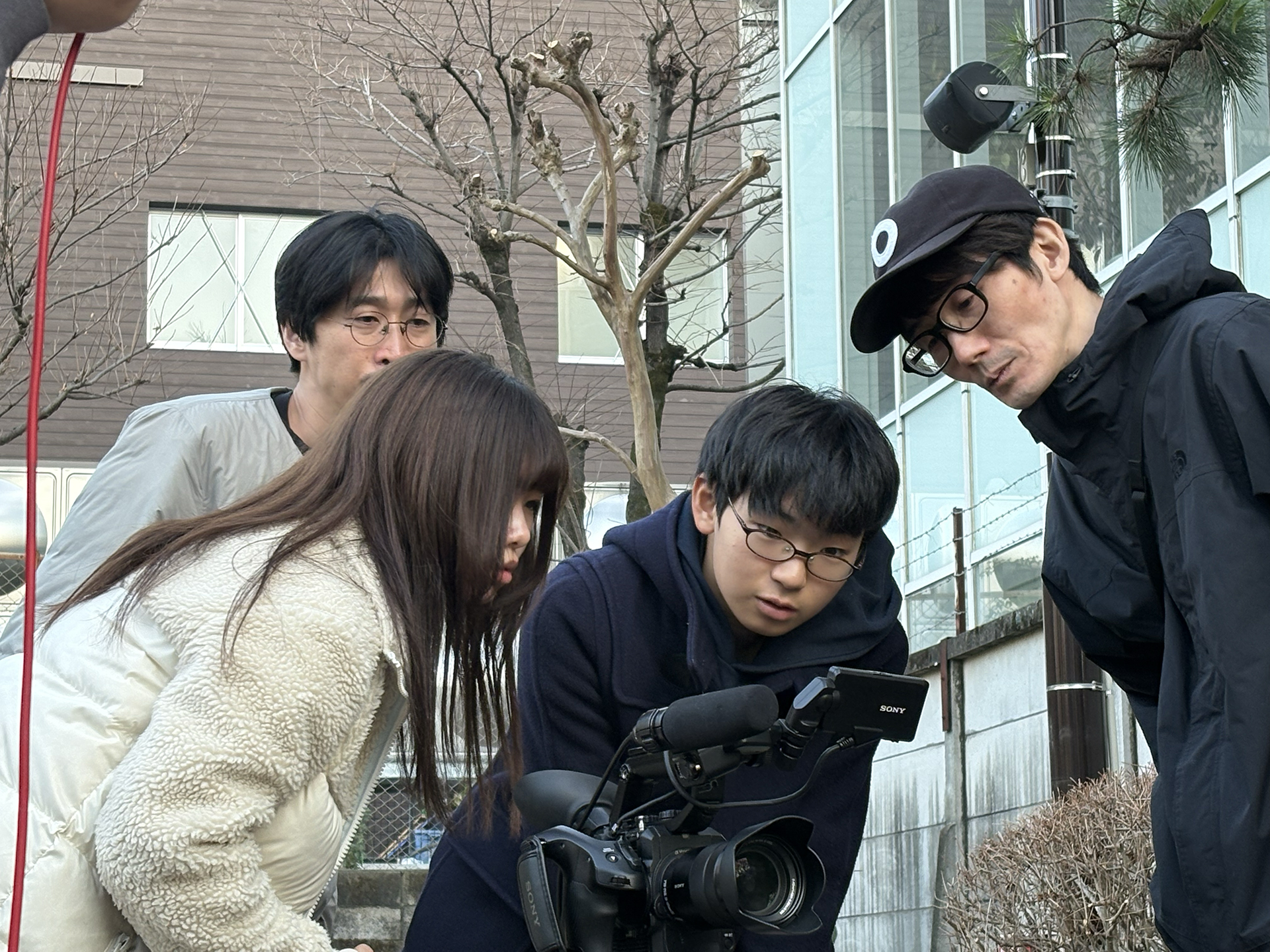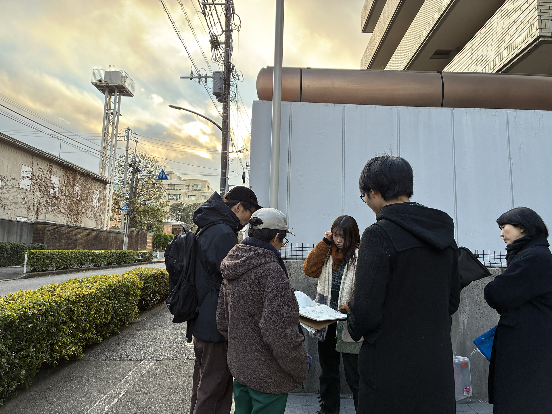 昼食後は2チームに分かれて、今日明日で最大2分の映像を撮る。課題に即して何をどう撮るのか話し合い、何はともあれ街に繰り出す。今日も寒い!