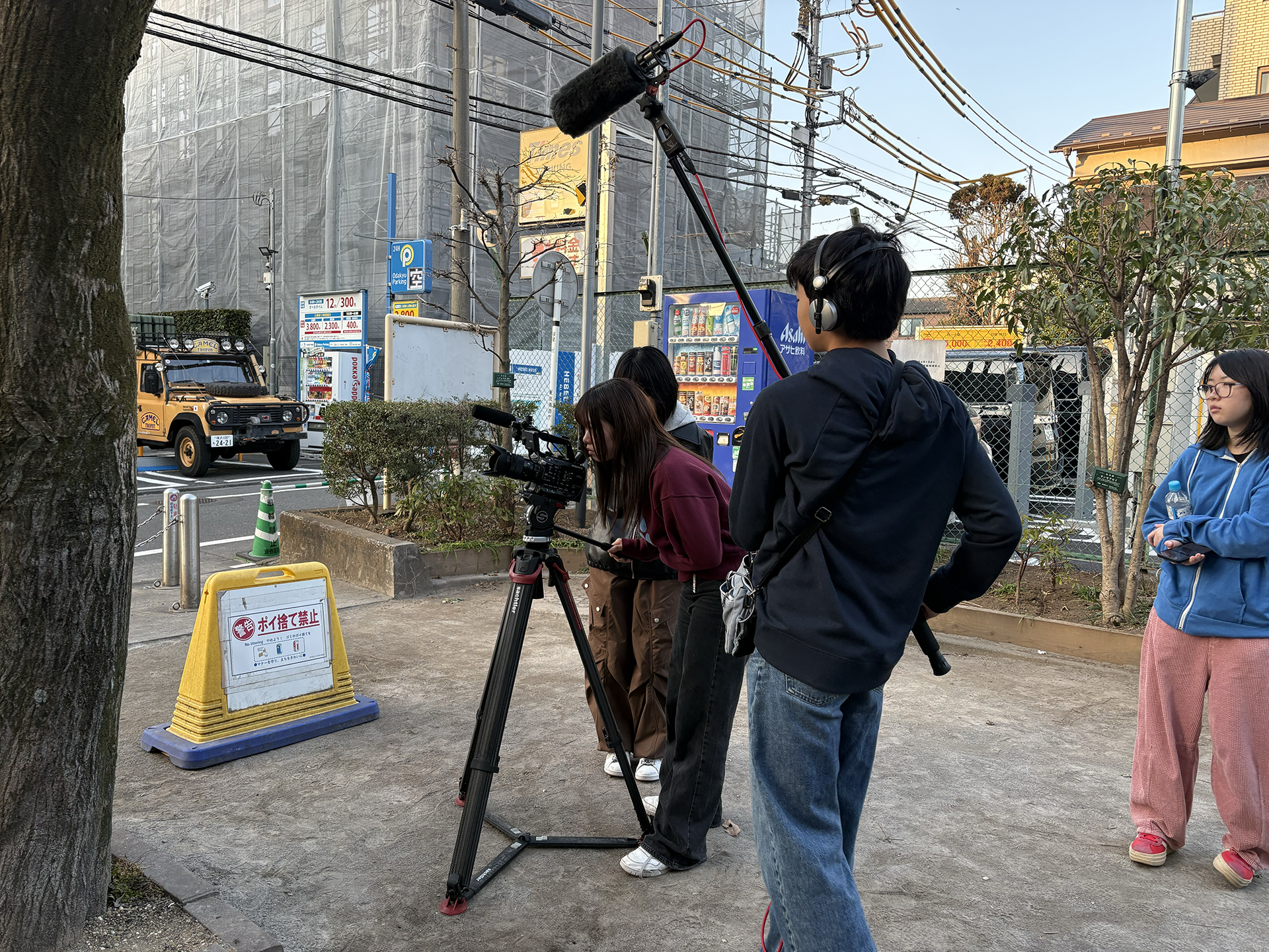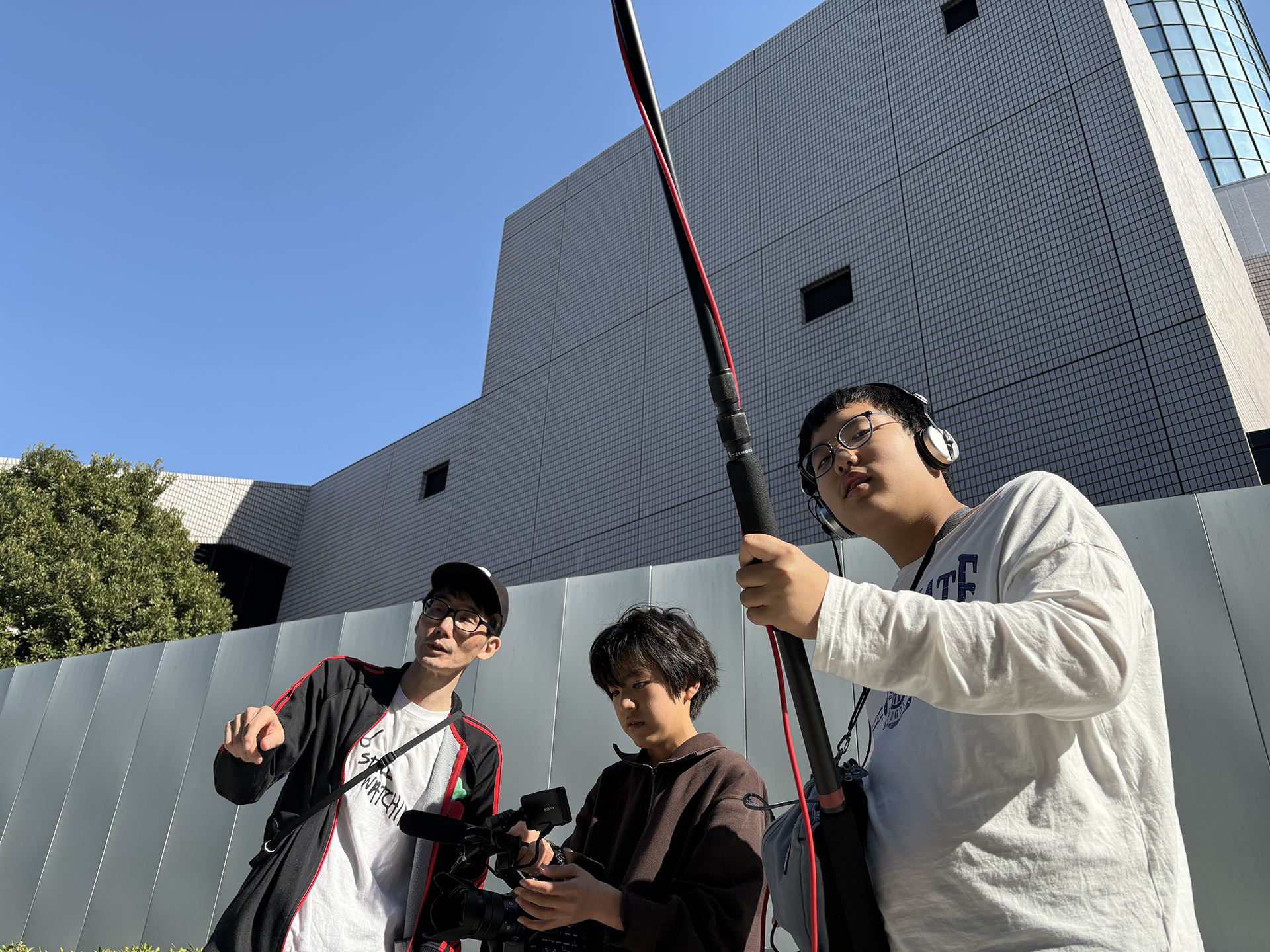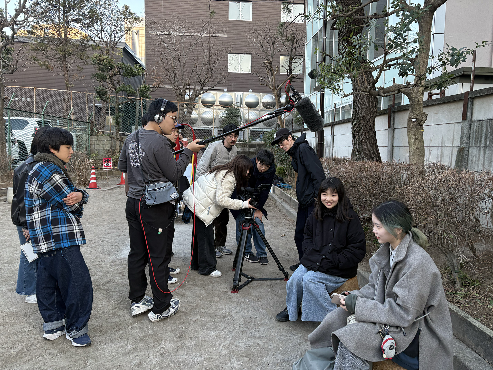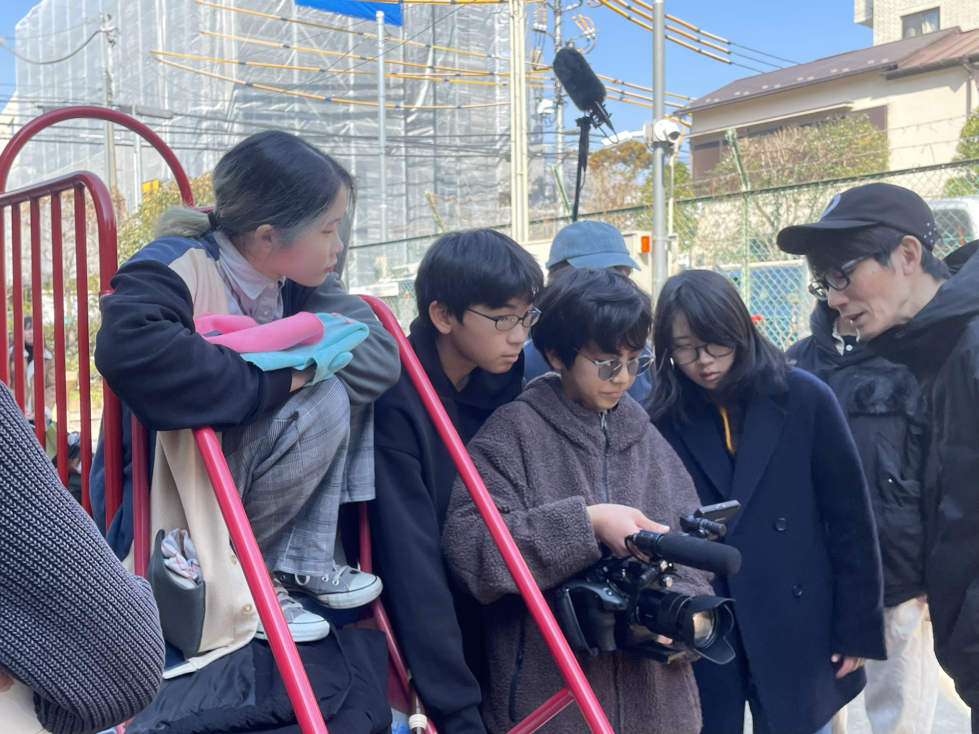 午後にはみんなで公園へ行き撮影開始。作品の冒頭のシーンをいくつか撮りました。