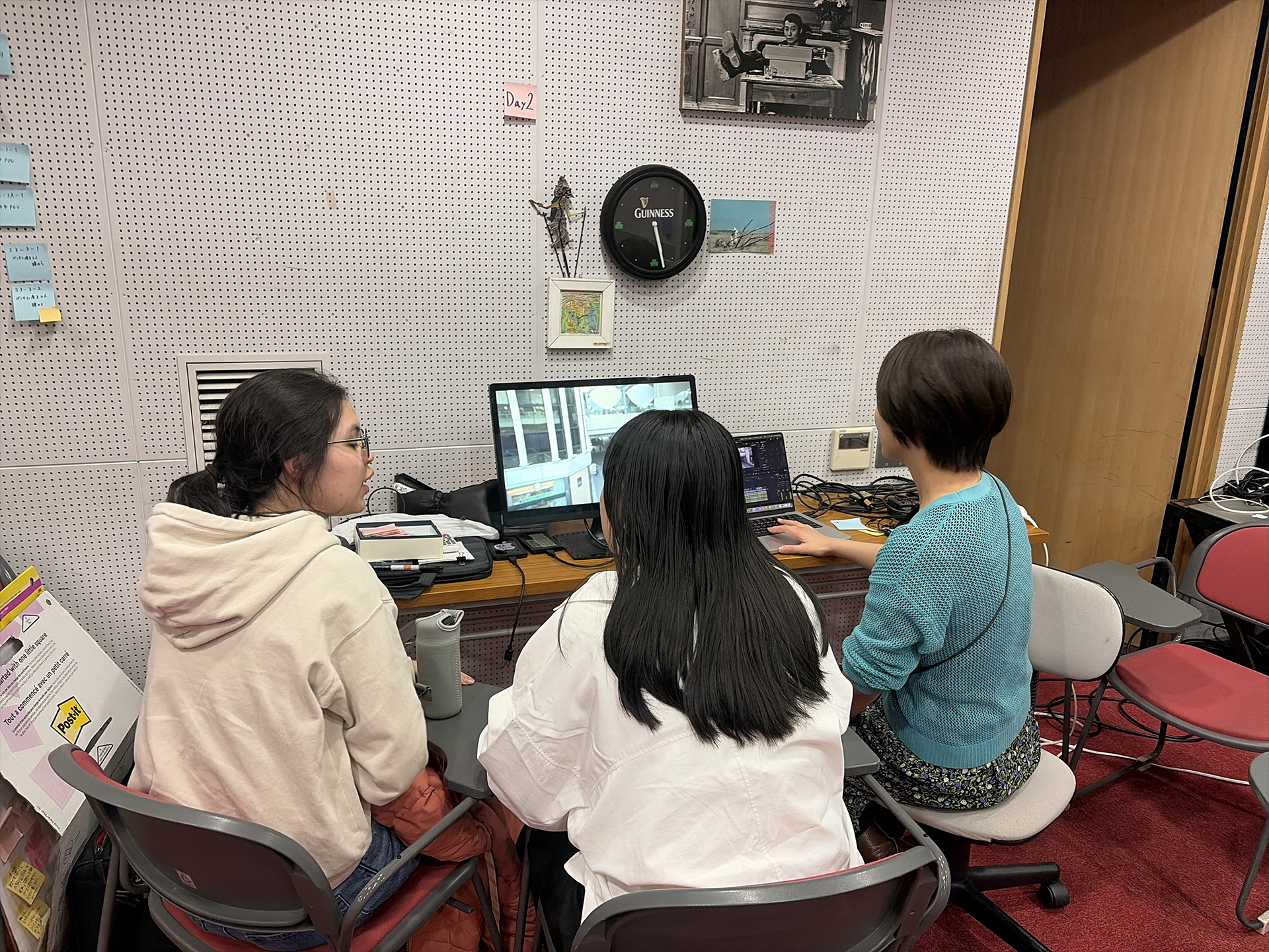 午前中は『ルノワール』を観て分からなかったことを付箋に書き出し、話し合いました。そのあと、宿題の映像をひとりずつ見ていきました。