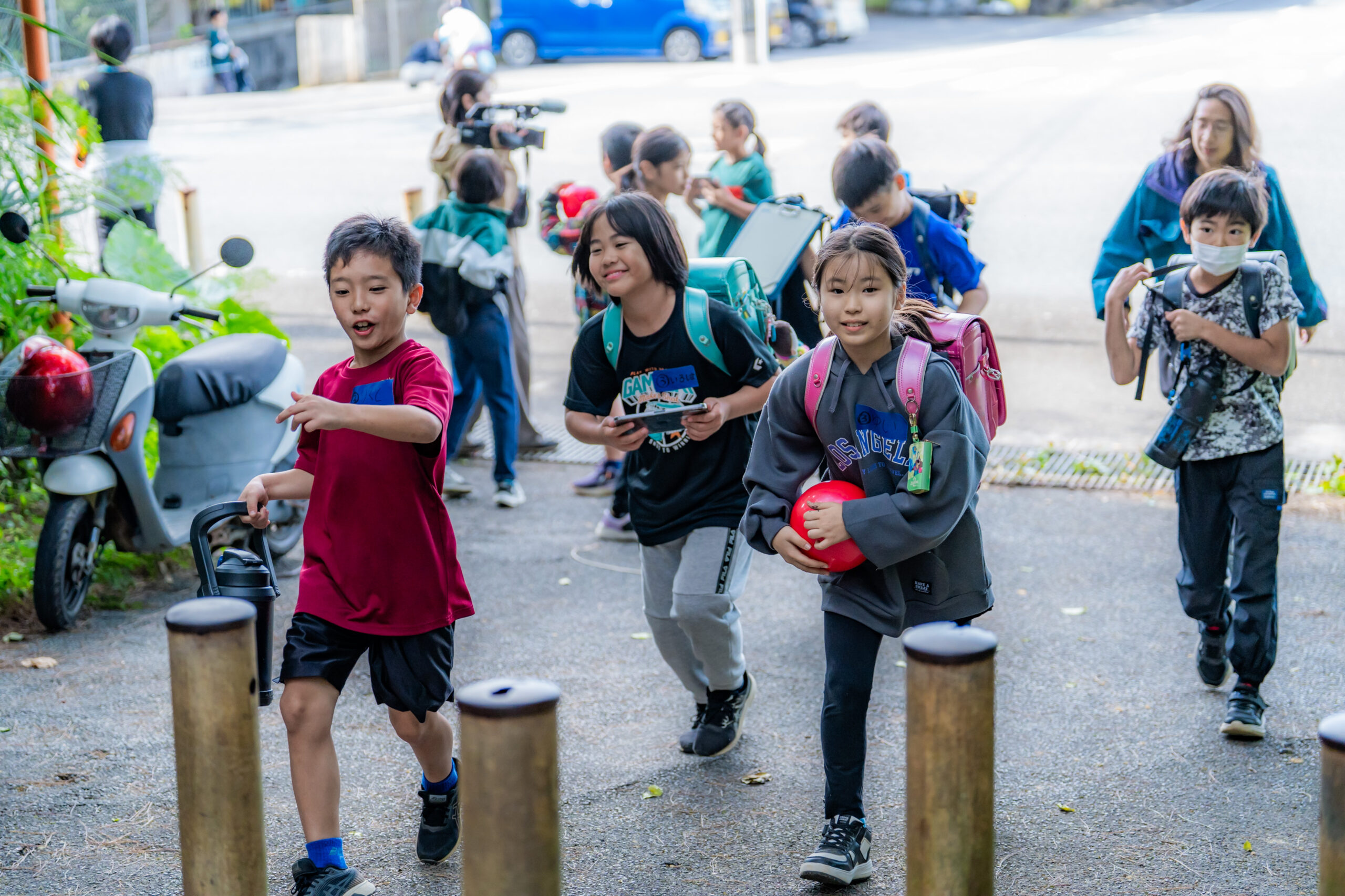 5人1組になって、生きていないはずのボールがまるで感情を持っているように工夫して撮影します。それぞれ撮影する場所を考えて、チームで相談しながら撮影。編集も自分たちでiPadでやります。最後に上映と舞台挨拶。