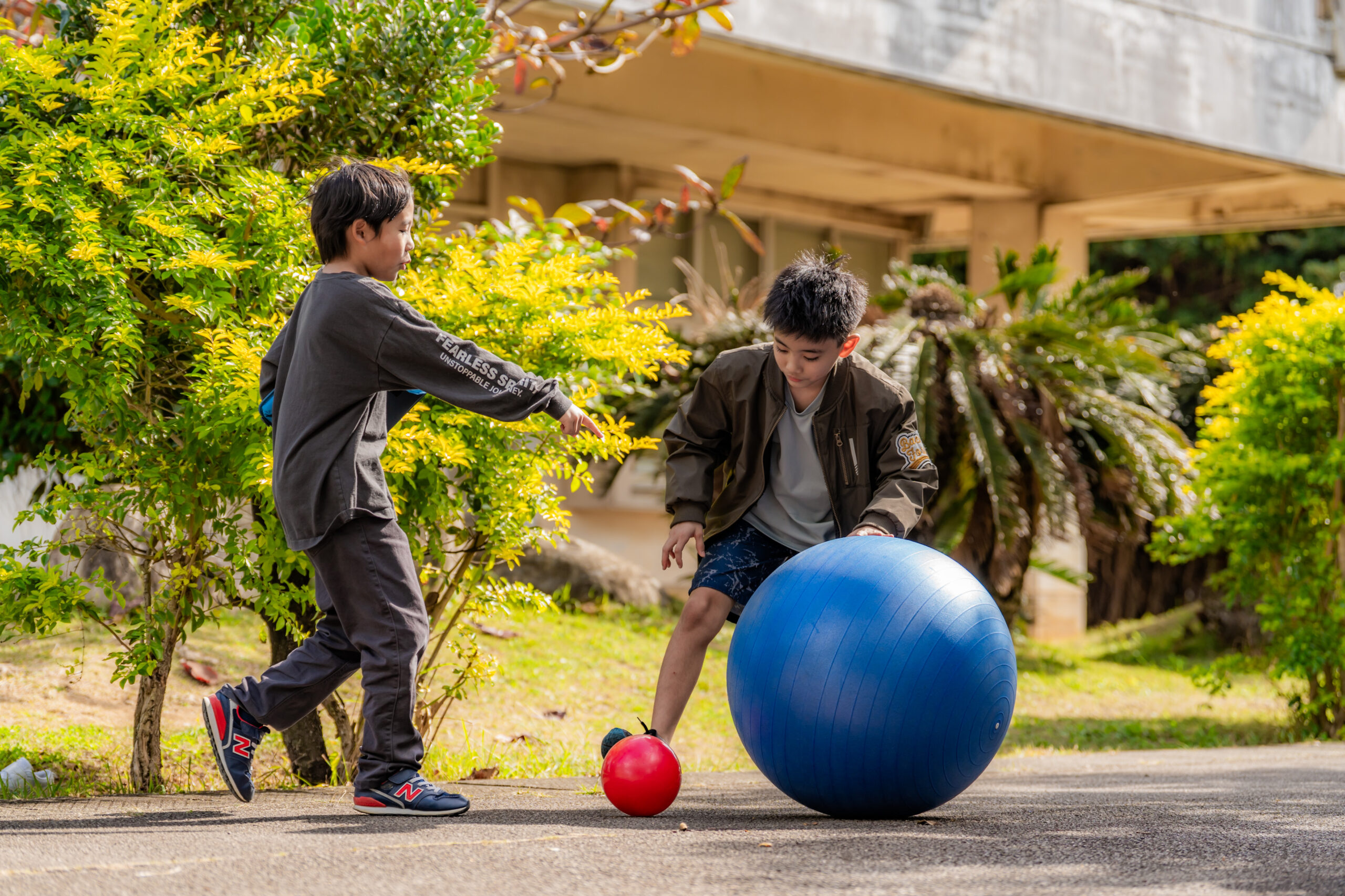 次は赤いボールを主人公にした『赤いボールの冒険』という映画を作ります。まずは、これまでに赤いボールが旅してきた映画を観ます。!!宮古島のみんながよく知った風景を赤いボールが転がってきます。どんどん学校に近づいて、なんとみんなのいる体育館の扉をドン!ドン!その時、本当に扉が音を立てます!みんな大騒ぎ。扉を開けると!赤いボールが体育館に飛び込んで来ました!!みんな大喜びです。みんなはこの続きを作ります。