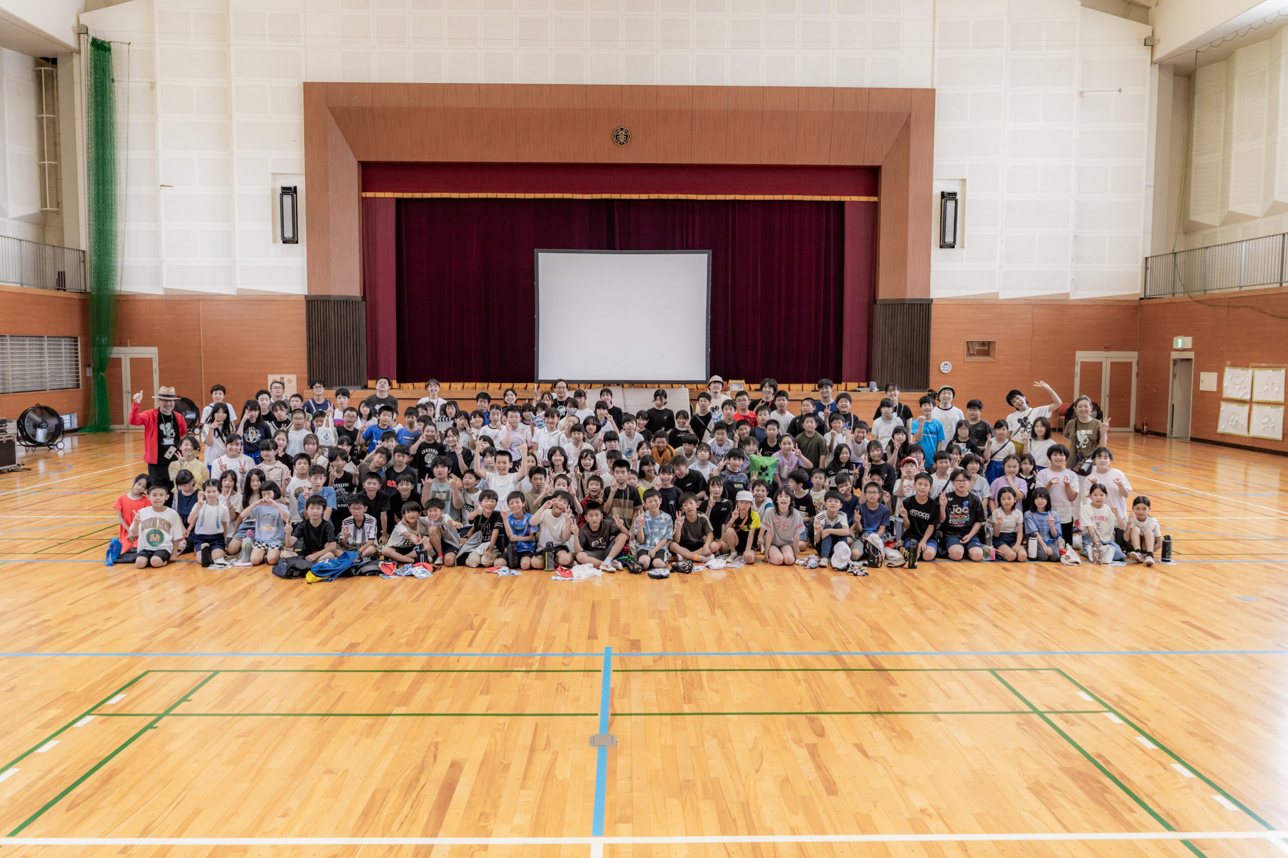 今回は、2つの学校の子たちが1つの体育館にあつまり、一緒に映画を鑑賞しました。鑑賞後の実際に映画撮影を体験/見学してみるワークでは、たくさんのこども達が俳優・スタッフ役に立候補。見学していた子達も、とても集中して撮影の様子を見つめていたのが印象的でした。