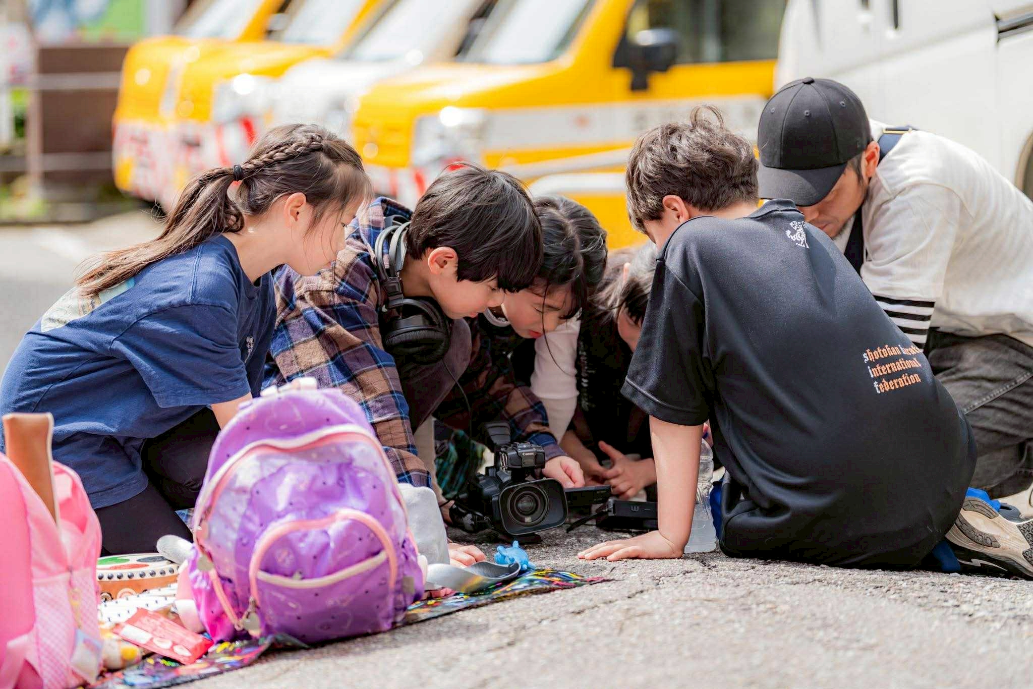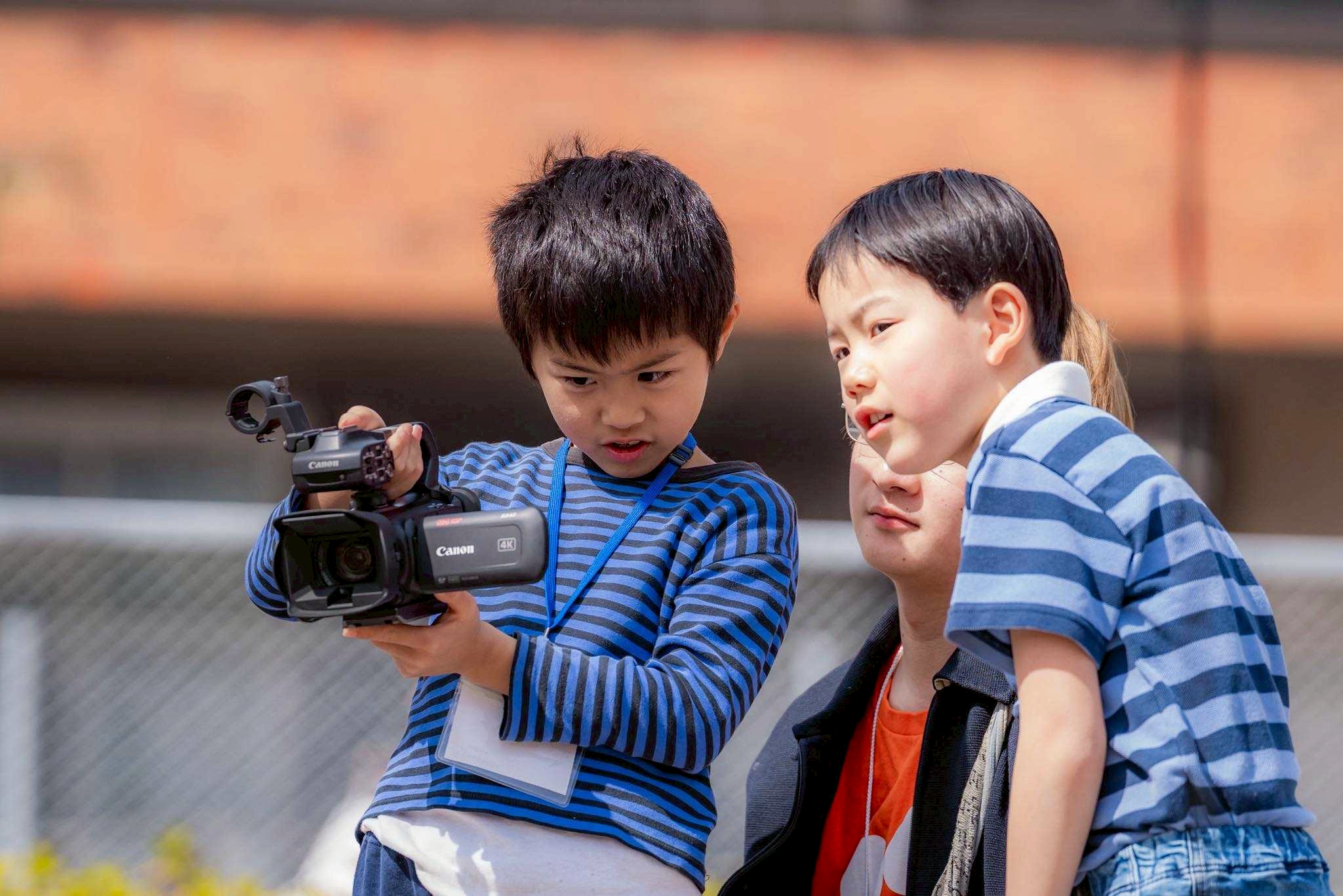 撮影が始まり、意見を出し合いながら進めていきます。撮影を重ねていく中で、みんなが遊んでいる様子を撮るのがいい、となり、出演者が自然に自由に動き、とても楽しそうな映像ができました。カメラを担当していなかった子も積極的に挑戦するようになり、みんなで協力し合いながら映画を作る意識が生まれています。明日は最終日。どんな映画が完成するのか楽しみだ!