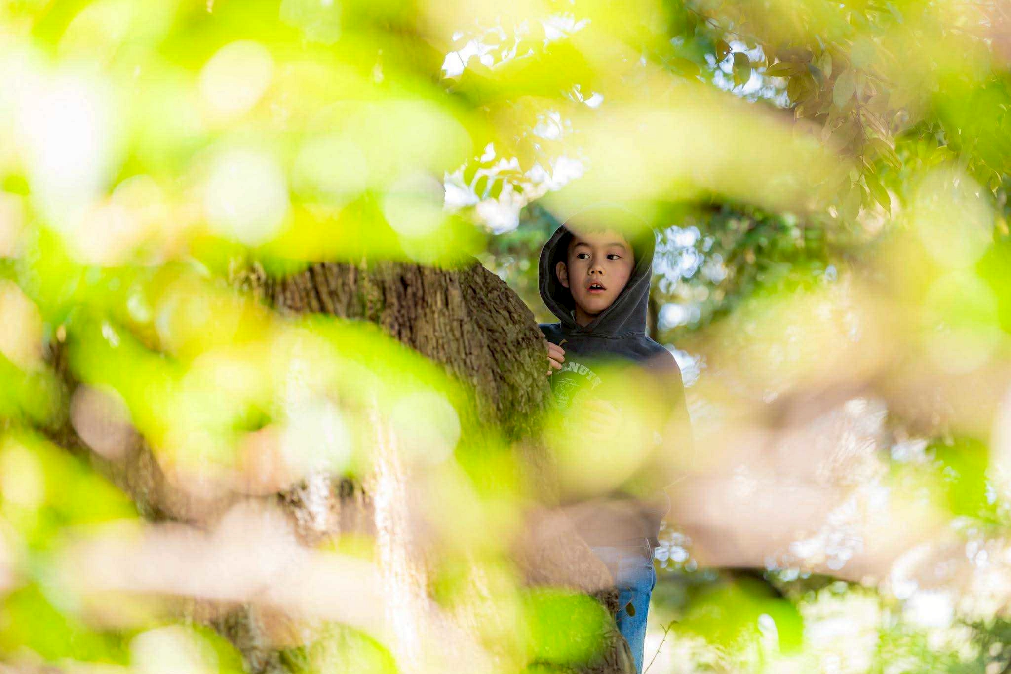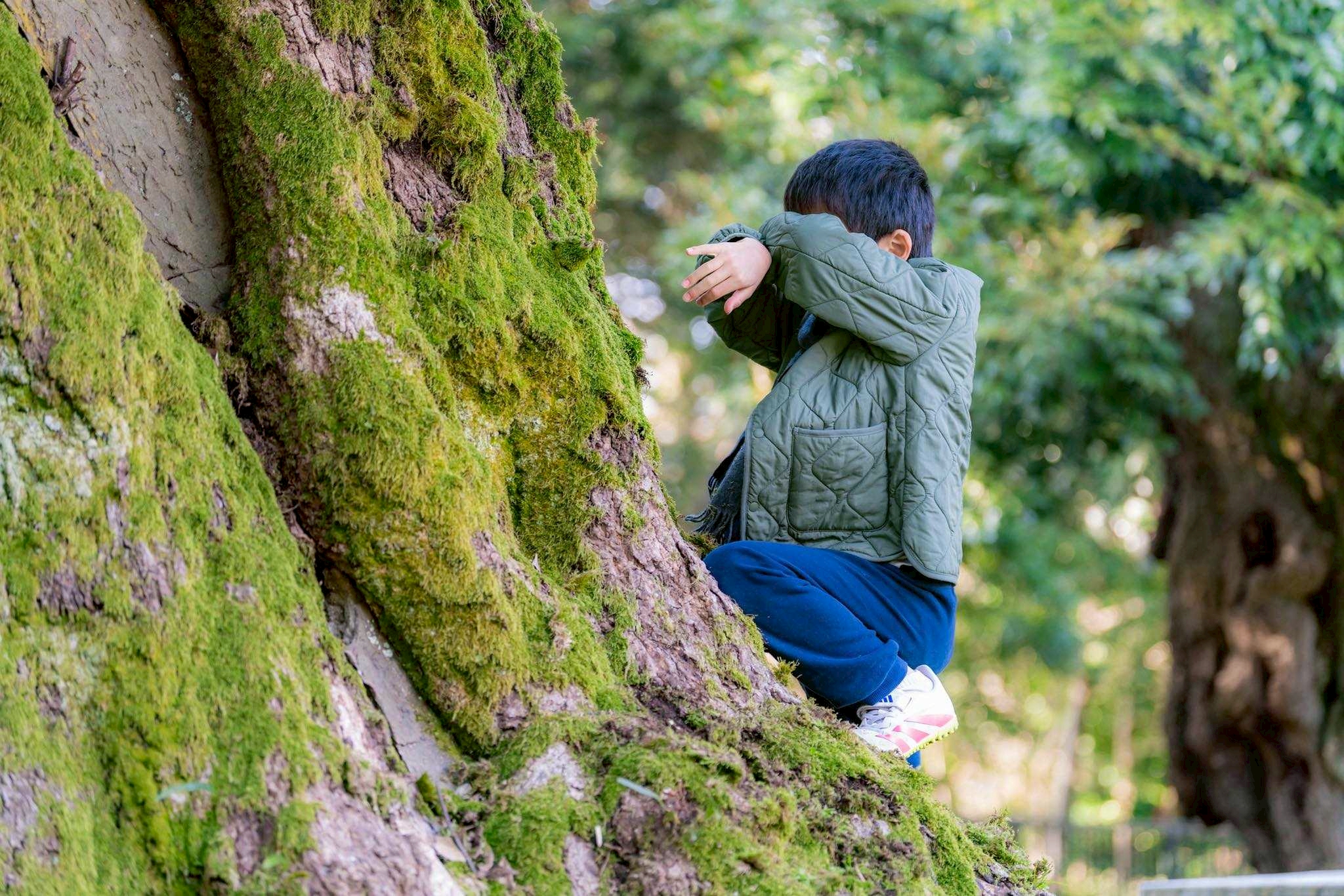 そこで青チームは、主人公がかくれんぼをしていて「ちょっと違う」状況になってしまうというお話を考えつきました。そして「本多の森」の魅力的な樹々の中で、4人の仲間がかくれんぼを始めるというシーンを撮ったところでこの日は終了です。さてさてこの後どんな「ちょっと違う」が起こるのか? 明日からの撮影が楽しみです!
