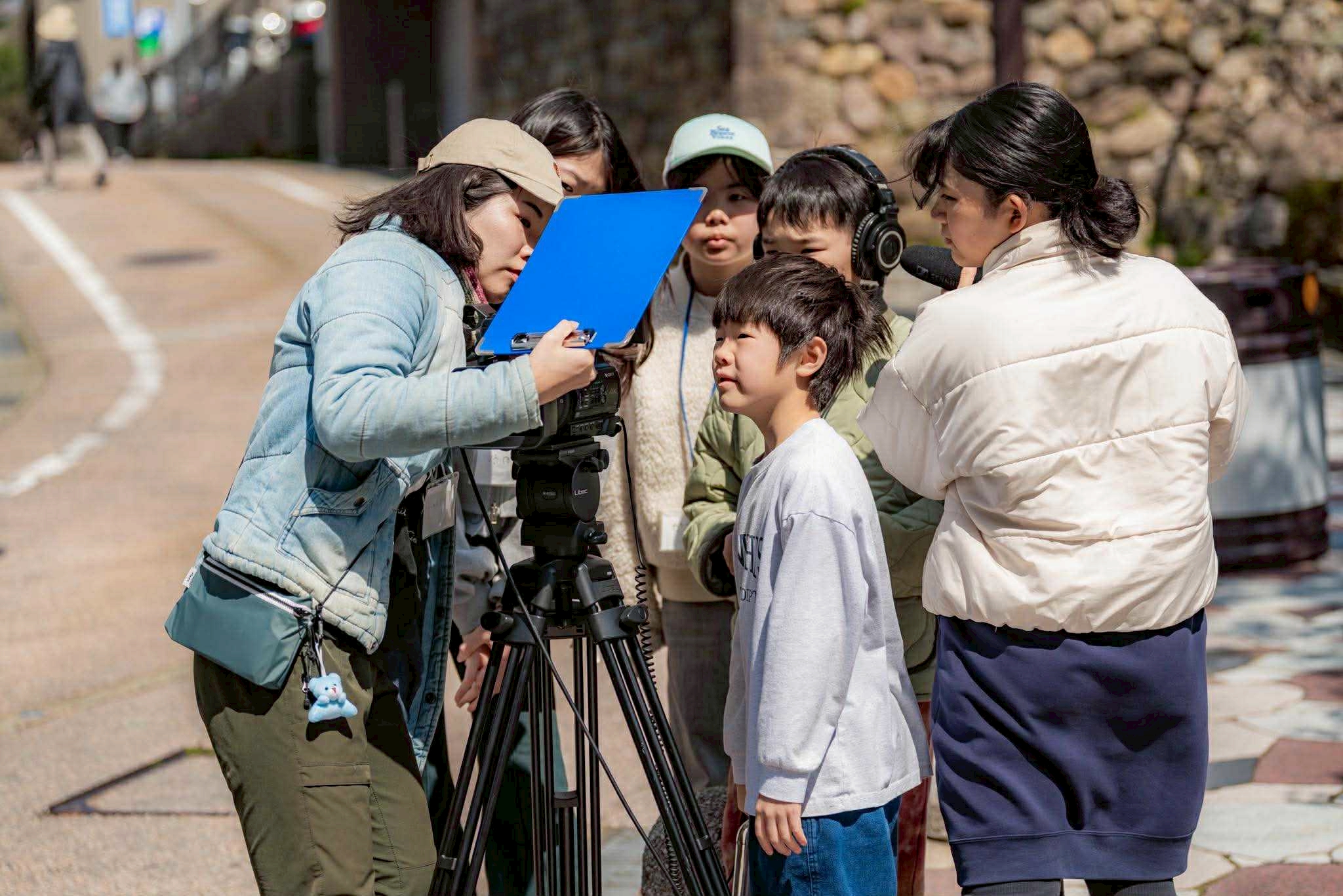 今年も金沢でのこども映画教室が始まりました。今回の特別講師は廣原暁監督(『HOMESICK』)です。まずは撮影の練習から始めます。