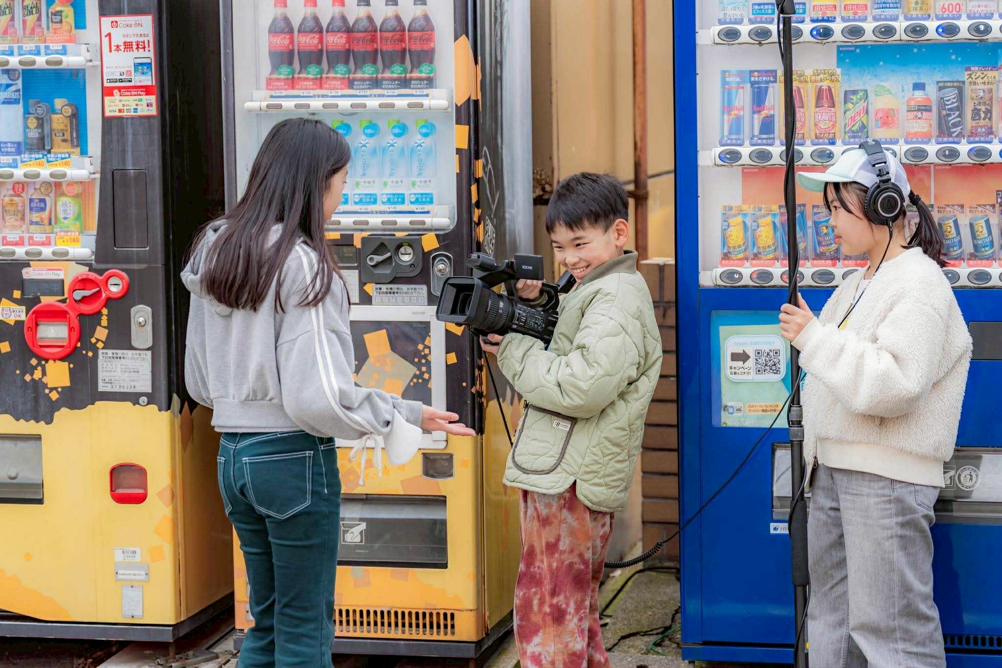 2日目は各チームが1日目に撮影した「あれ?、ちょっと違う(いつもと違う)」を見てスタートしました。こどもたちの思ったことや特別講師ヒロの「映像でいつもと違うと思わせるものを撮ろう」という言葉を聞き、21世紀美術館の地下を探索しました。その後、昨日の映像を見直し、「自販機の形と隙間がいつもと違う」となり柿木畠ポケットパークへ。午前中は自販機を中心に撮影して終了し、お昼休憩に入りました。