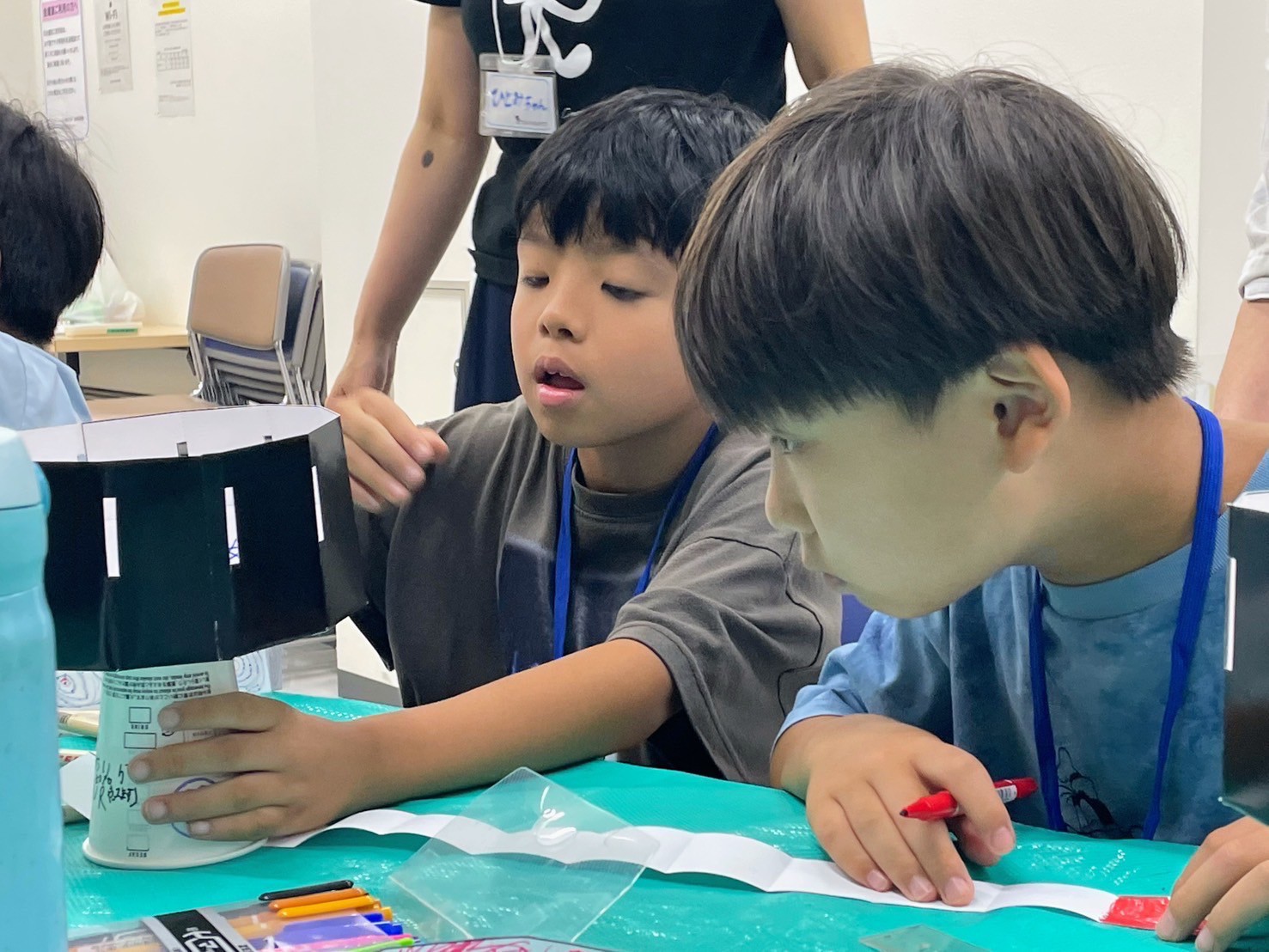 その後、ゾーエトロープ&12コマの作品づくりへ。今年は、自分の世界観を極めていく子が多く、ボールの跳ね方を試行錯誤してみたり、鳥やフグのユニークな動きを描いてみたり、サイコロの世界を描いてみたり、目が回るようなグルグルを描いてみたり。動きだけではなく、色の変化を描いて虹を表現した子もいました。どの作品も面白い! 最後は作品をスクリーンに映して上映会! どの子も、上映作品にたくさん試行錯誤した上でのとびきりの1本を選んだからか、自信をもって舞台挨拶をしているのがとっても素敵でした。